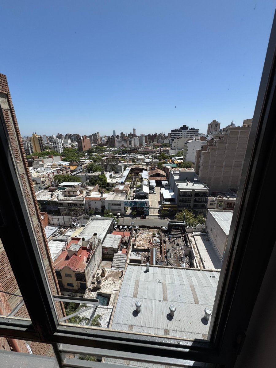 Ubicado en el piso 12 al contrafrente, el departamento cuenta con living comedo luminoso, sin balcon pero con un amplio ventanal, posee cocina integrada con amoblamientos de alacena y bajo mesada, incluye artefacto de cocina, un baño completamente equipado con bañera y un dormitorio con placard. Cabe destacar que los pisos salvo en cocina y baño son de parquet.