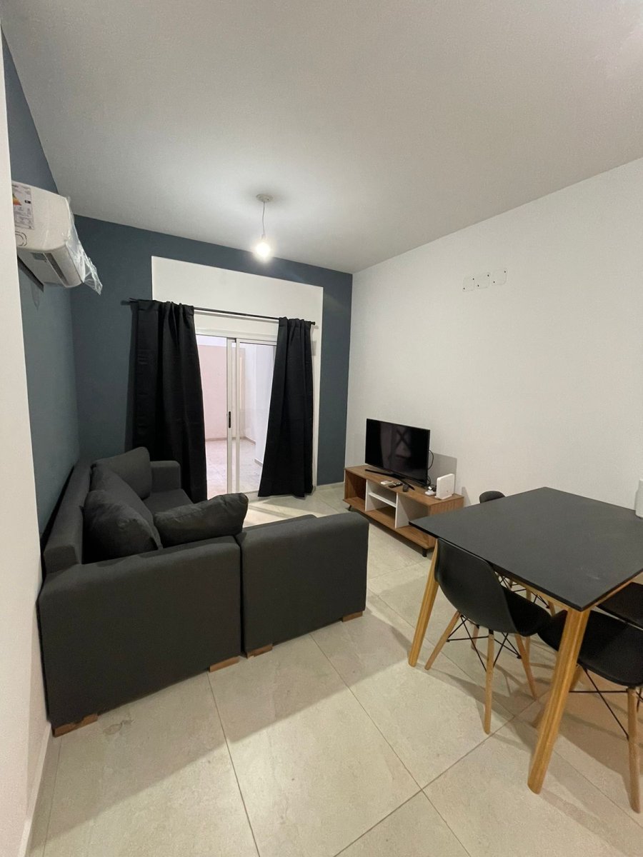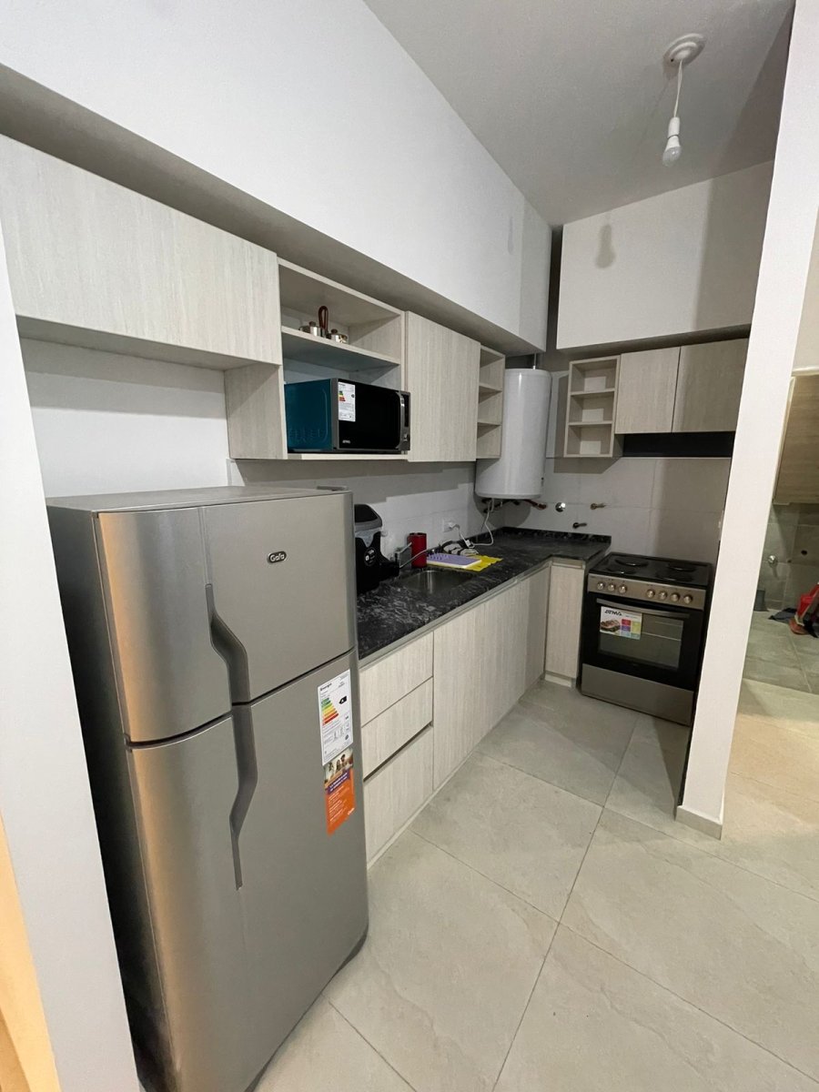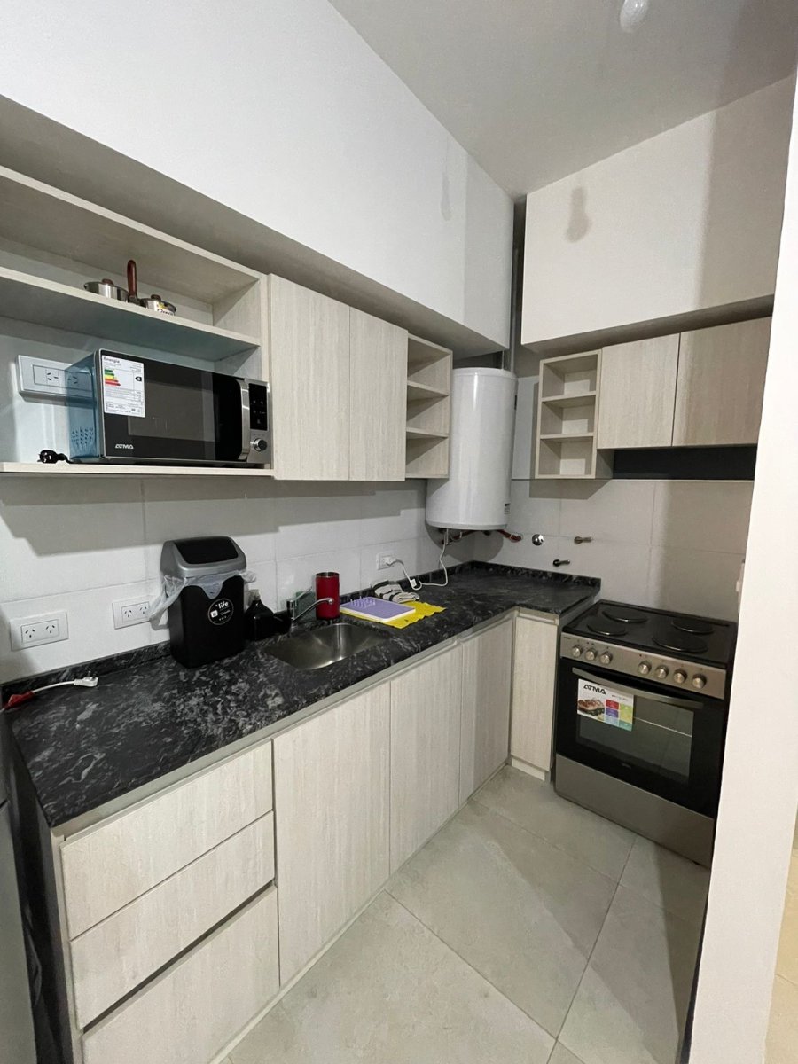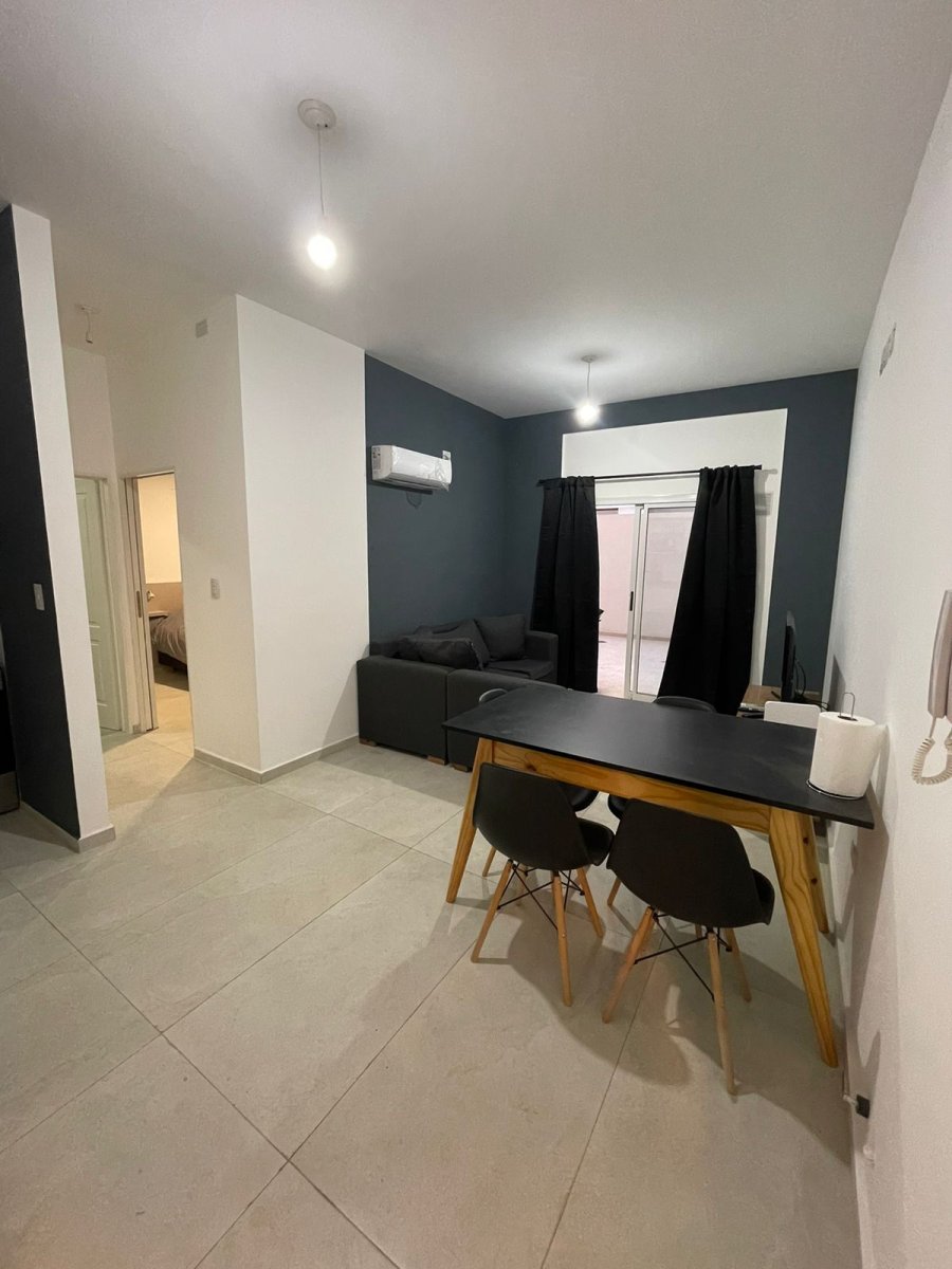 El departamento cuenta con ingreso a el living comedor con salida a un amplio patio propio, cocina integrada a la izquierda con amoblamientos de alacena y bajo mesada, un dormitorio con placard. Y un baño completamente equipado,